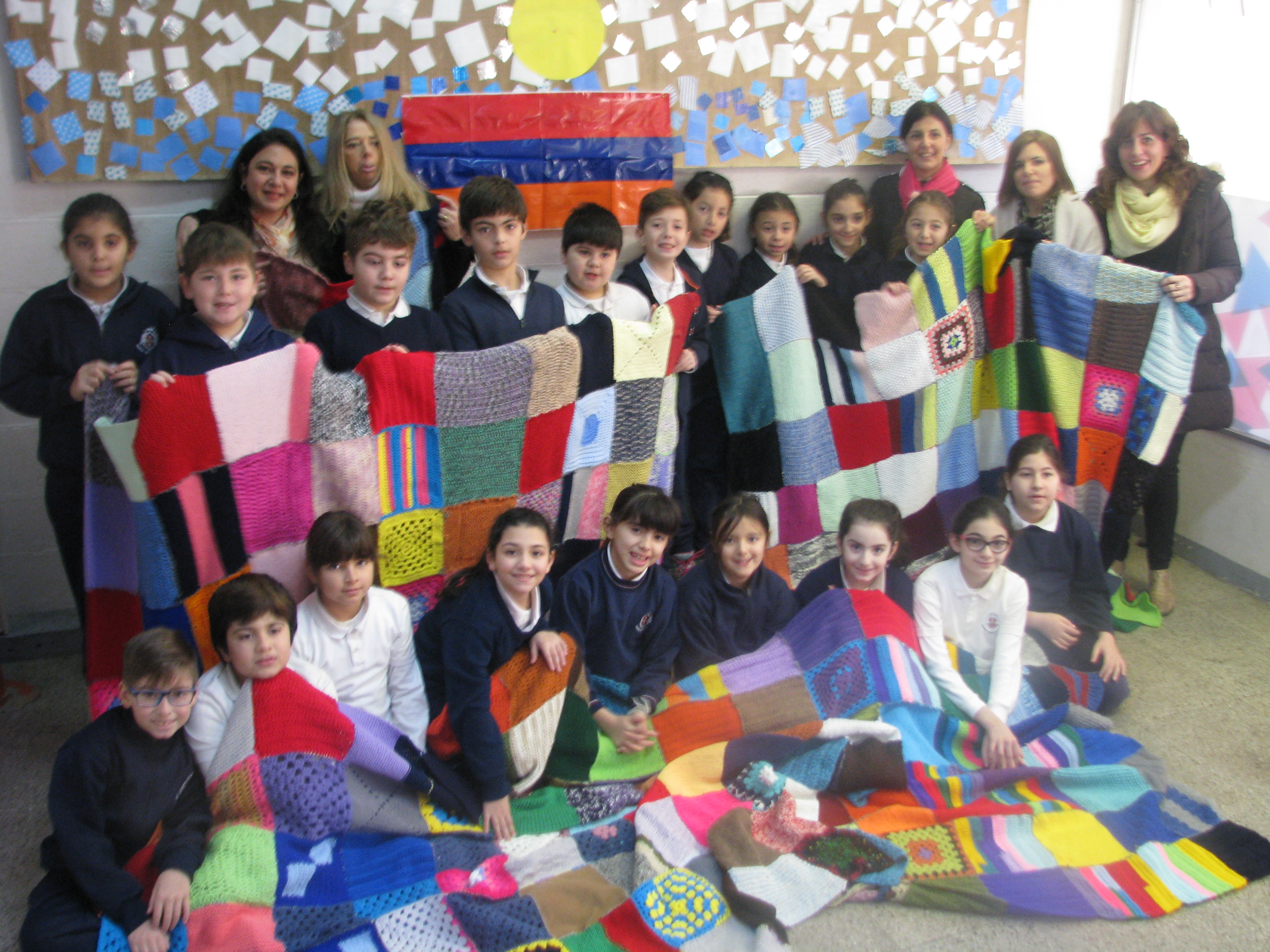 El Proyecto Institucional “Marie Manoogian Abriga” tiene como objetivo principal educar a los alumnos en valores. El Proyecto estuvo a cargo de los alumnos de 4to grado y sus docentes. La Comisión de Madres se ofreció a unir los cuadrados enviados por todas las familias y así confeccionar mantas para ser donadas a los pacientes internados en el Hospital Fernández. Las mantas fueron recibidas por la Jefa de Pediatría: Dra. Graciela Suárez. Hicieron entrega de las mismas el señor Adolfo Smirlian, representando al Consejo Directivo de la UGAB, y por Roxana Boyadzian representando a la Comisión de Madres del Instituto Marie Manoogian.