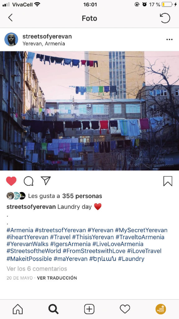 Corría el año 2013 y, lo que parecía ser un hobby, se transformó en una vidriera que exhibe con orgullo la cotidianidad de Yerevan. La idea de Anna era sacar fotos mientras caminaba por las calles y, entre un paso y otro, se dio cuenta de que había algo en el día a día de la ciudad y ella quería compartirlo. “Después de vivir en el extranjero por un tiempo, volví a Yerevan y quise mostrarle al mundo la belleza de mi ciudad. En ese momento, casi no había fotos de ese ‘Yerevan oculto’ en Instagram. Entonces, empecé a usar los hashtag #StreetsofYerevan y #Yerevan para que la gente pudiera ver el contenido sobre mi Yerevan secreta”.