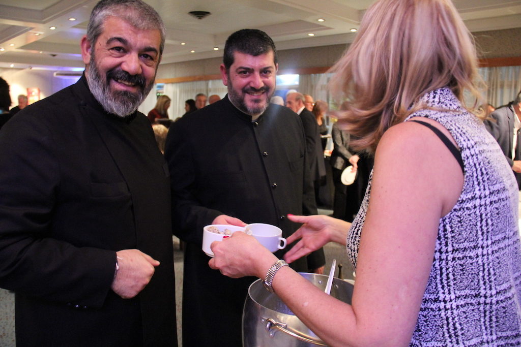 El segundo día de la Semana de la Cocina Armenia fue muy concurrido y también nos visitaron muchas personalidades. Se encontraban presentes la Embajadora de Armenia en Argentina, Estera Mkrtumyan; el Arzobispo de la Iglesia Apostólica Armenia, Kissag Mouradian, junto al Hair Surp Aren Shahinian y los Der Hair; el Dr. León Carlos Arslanian, Miembro Honorario de la UGAB; el Dr. Ricardo Gil Lavedra, Ministro de Justicia y la escritora Claudia Piñeiro; el Sr. Jorge Fiori, Presidente de la Cámara Argentina de Comercio; Guillermo Dietrich, Vicepresidente de la Cámara Argentina de Comercio; Carlos Kambourian, Presidente del Consejo de Administración del Hospital Garrahan; el empresario Artín Kalpakian; y Matías Patanian, Vicepresidente de Aeropuertos Argentina 2000.