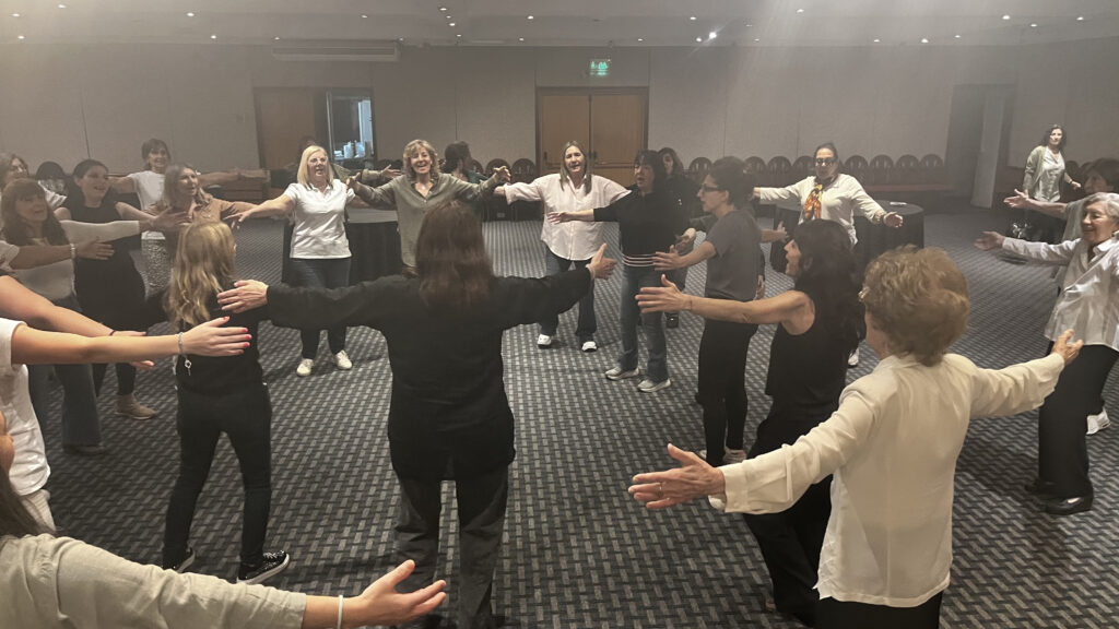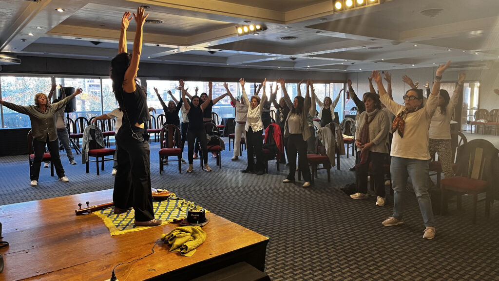 Más de 25 participantes exploraron las posibilidades de su voz, su respiración y la conexión con ellas mismas a través de la vocalización y el canto. Fue una jornada hermosa, llena de aprendizajes, que terminó con todas las participantes cantando y bailando en ronda, acompañadas también por la Prof. de Danza Armenia, Eli Kabadaian 💃